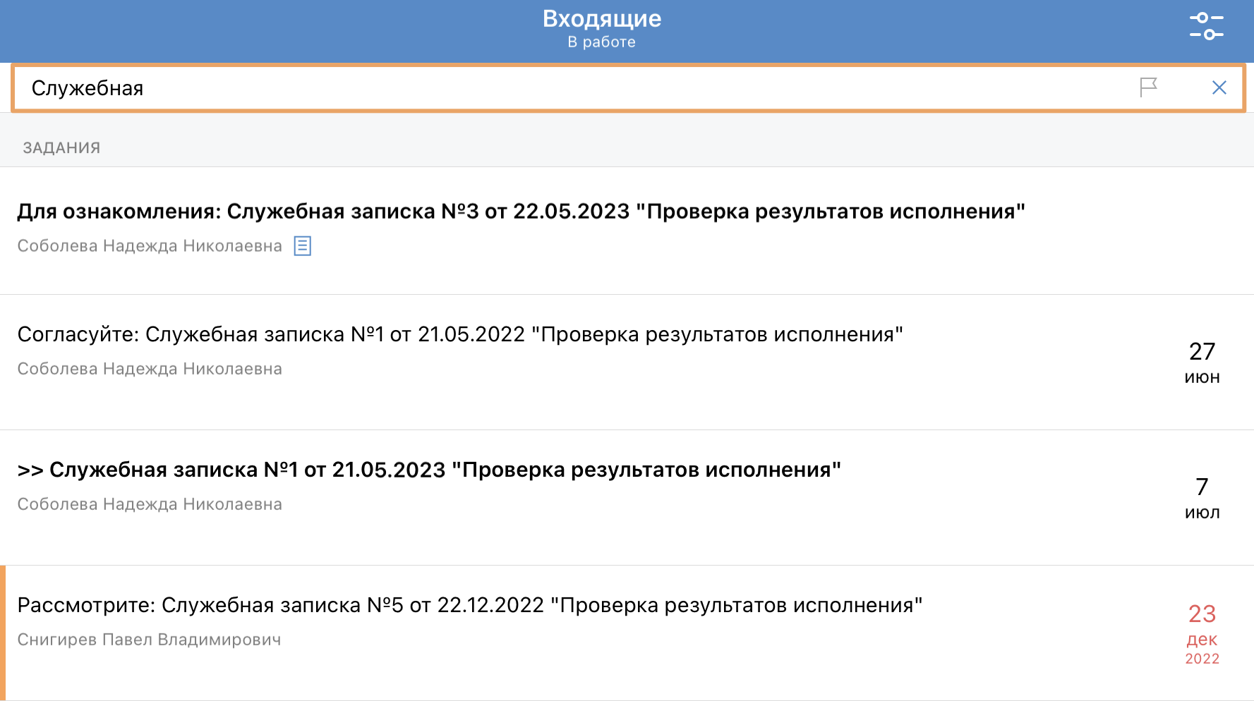 •любые объекты, вложенные в перечисленные задачи, задания и уведомления.