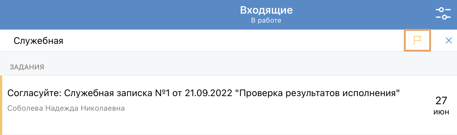По умолчанию на главном экране Solo отображаются папки веб-клиента Directum RX: «Входящие», «Исходящие», их папки потока, «Избранное» и «Общие». Также там видны папки, добавленные в закладки, и все созданные подпапки папок «Входящие» и «Исходящие». Кроме того, видимость папок в приложении может настроить администратор.