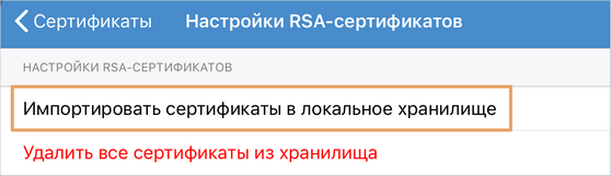 3.В настройках профиля Cертификаты/Настройка RSA-сертификатов нажмите на пункт Импортировать сертификаты в локальное хранилище:
