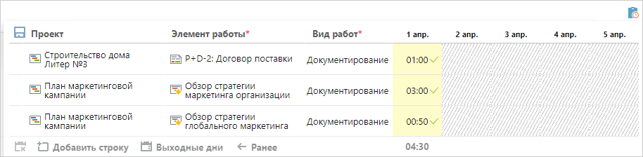 Заполненные отметки можно скопировать и вставить в новую строку с помощью горячих клавиш: