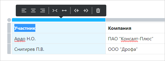 – выровнять текст в столбцах по левому краю, центру или правому краю;