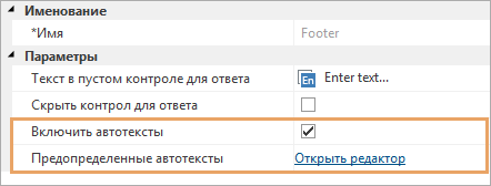 2.В параметре Предопределенные автотексты перейдите по ссылке Открыть редактор. Параметр отображается, если установлен флажок Включить автотексты. Не обязателен для заполнения.