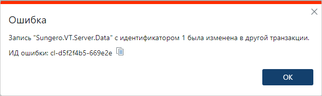 "mt":"Запись \"Sungero.VT.Server.Data\" с идентификатором 1 была изменена в другой транзакции.",