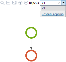 В правом верхнем углу редактора схем отображается выпадающий список для работы с версиями. При создании типа задачи у схемы одна версия (V1), и на ней отображаются только элементы начала и завершения схемы.