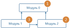 ВАЖНО. Сперва инициализацию проходят все модули, у которых нет зависимостей. Далее последовательно выполняется инициализация модулей, работа которых связана с работой других модулей. Например, модуль 1 зависит от модулей 0 и 2. А модуль 2 зависит только от модуля 0. В результате порядок инициализации будет следующим: Модуль 0, Модуль 2, Модуль 1.