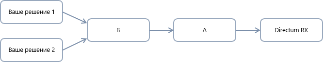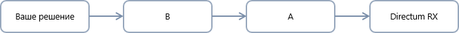 В начале цепочки ставится решение, в котором находится родительский элемент разработки, на основе которого делались перекрытия. В описанном примере в начале цепочки будет базовое решение Directum RX. Остальные решения сортируются по уникальному идентификатору (GUID). Предположим, что у решений А и B следующие идентификаторы: