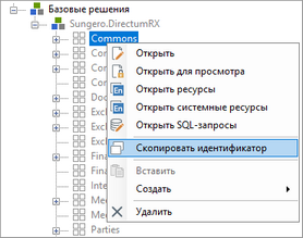 Если вы хотите узнать идентификатор (GUID) импортированного элемента разработки, выделите его в дереве решений, в контекстном меню выберите пункт