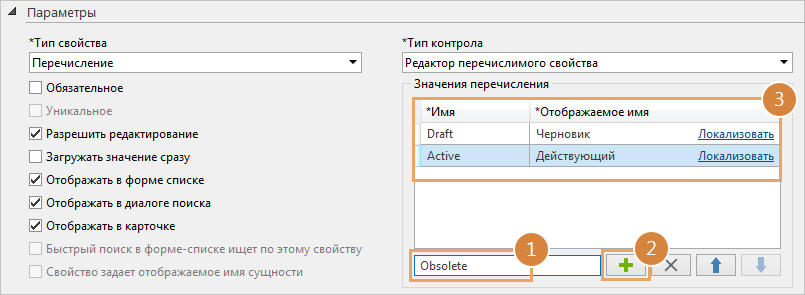 << Click to Display Table of Contents >> Разработка > Элементы разработки > Типы сущностей > Свойства > Типы свойств Перечисление |