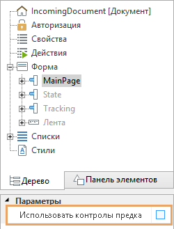 Чтобы вернуть внешний вид вкладки, установите флажок Использовать контролы предка. Вкладка станет такой же, как в родительском типе сущности.
