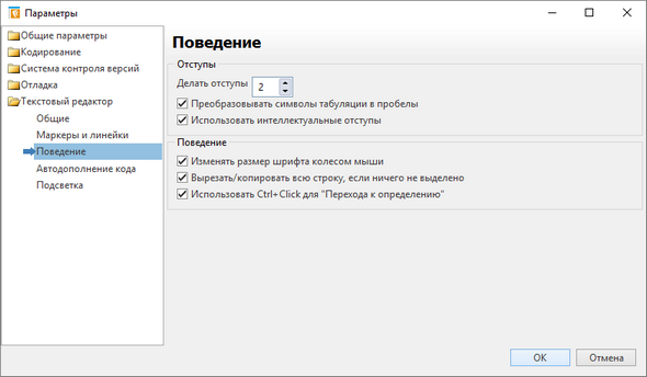 Для автоматического форматирования кода используйте сочетание клавиш Ctrl+I, предварительно настроив отступы в среде разработки. Для этого в меню последовательно выберите пункты: Инструменты, далее Параметры, закладка Текстовый редактор, Поведение, укажите необходимые настройки: