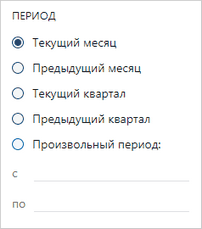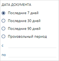 Контрол используется для выбора интервала времени. Для удобной фильтрации по датам рекомендуется добавить предопределенные периоды с учетом контекста списка и возможность ввода произвольного периода. Используйте контрол «Период дат» вместе с контролом «Набор флажков». В этом случае флажки набора соответствуют наиболее частым периодам, по которым фильтруются сущности в списке: последние 7/30/90 дней и др. При этом «Период дат» становится доступным, если установлен определенный флажок, например, Произвольный период. Рекомендуемые предопределенные периоды: •для большинства типов документов в качестве периодов используются последние 7/30/90 дней. Подобные относительные периоды удобны тем, что позволяют вывести недавние объекты за постоянный период.