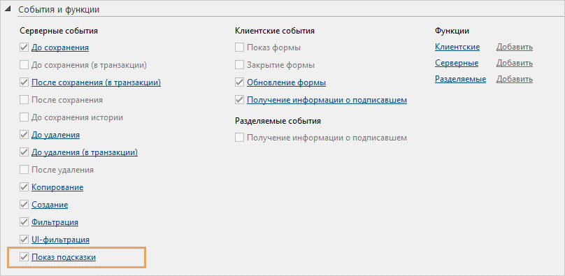 События сущности задаются в редакторе типа сущности в группе «Серверные события». Выполняются на веб-сервере.