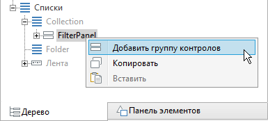 2.В контекстном меню узла выберите пункт Добавить группу контролов.