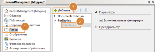 Чтобы добавить панель фильтрации для вычисляемой папки: