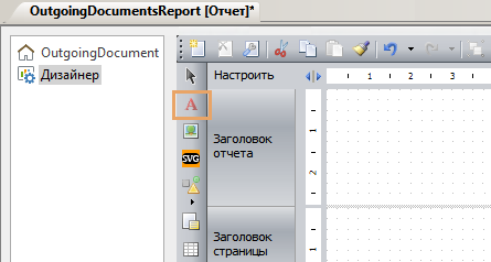 Предположим, разрабатывается отчет, содержащий исходящие документы, зарегистрированные в определенном журнале регистрации в некоторый период времени. Необходимо добавить заголовок отчета. Для этого: