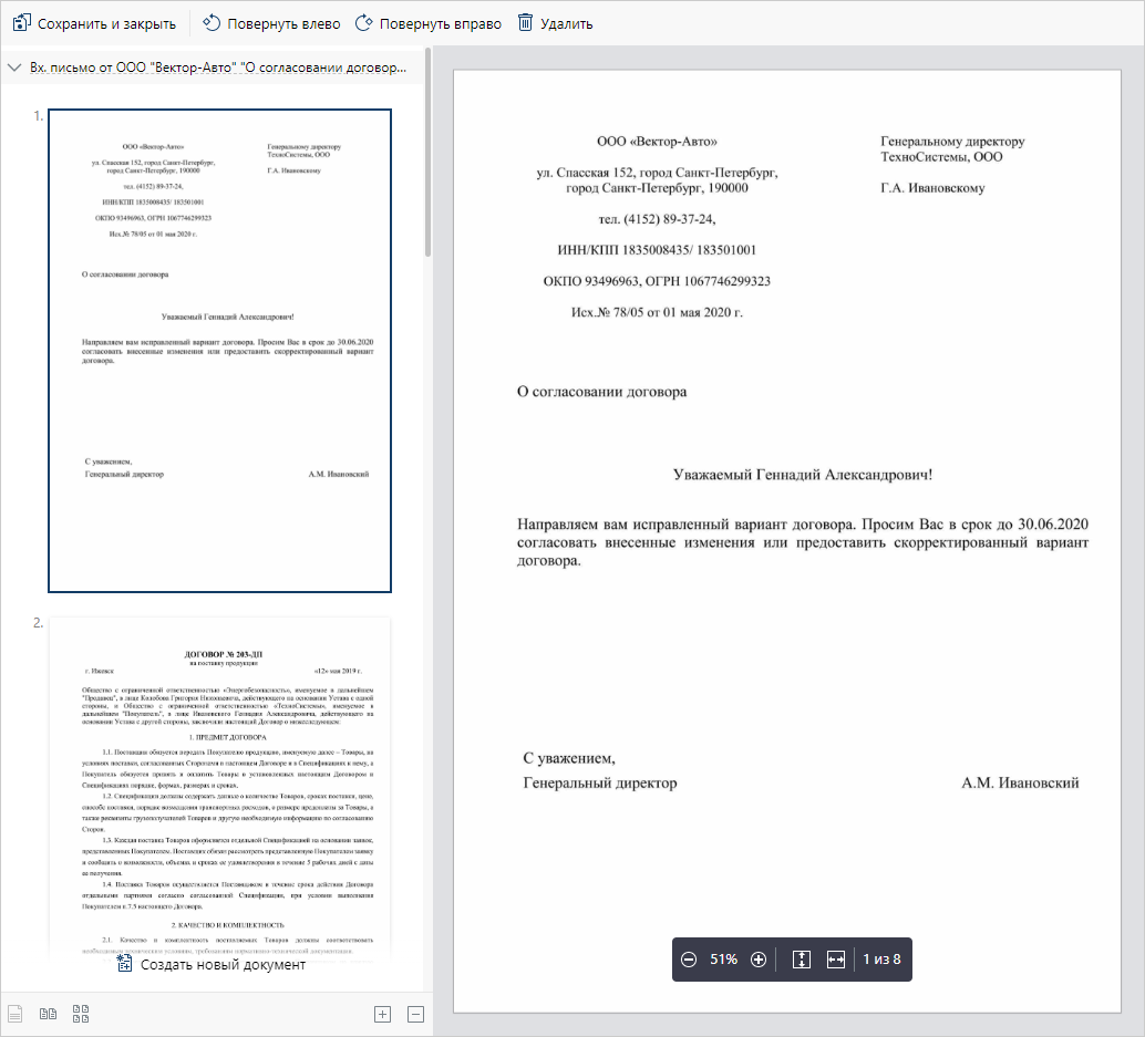 •поверните страницы, если они занеслись в неправильной ориентации. Для этого выделите страницу и на панели действий нажмите на кнопку