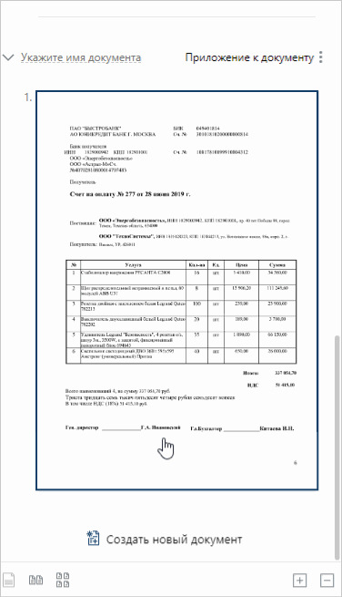 1.Создайте новые документы внутри комплекта, если одно или несколько вложений не отделились от основного документа. Для этого на панели со списком страниц нажмите на кнопку Создать новый документ и переместите в область созданного документа необходимые страницы: