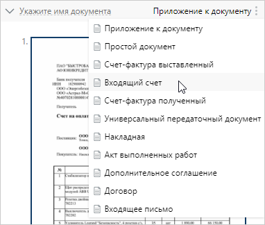 2.По умолчанию создается документ с типом «Приложение к документу». При необходимости тип можно сменить. Для этого нажмите на кнопку
