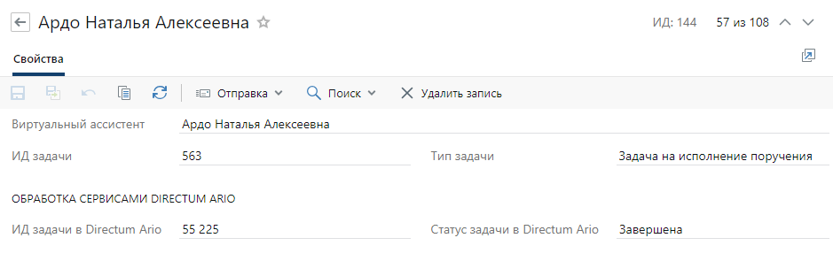 Если запись справочника сформировалась, проверьте значение поля Статус задачи в Directum Ario, если значение: