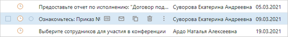 •работайте с записями с помощью быстрых действий. Они появляются при наведении курсора на запись. В зависимости от списка состав действий может изменяться. Например, с их помощью в папке «Входящие» можно быстро отметить задание как прочитанное/непрочитанное, скопировать и удалить ссылку на задание. При нажатии на кнопку
