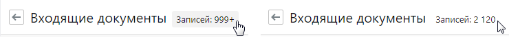 Примечание. Если список записей сформирован по результатам поиска по Elasticsearch (поиск по критериям или полнотекстовый поиск), то точное количество записей можно посчитать, только если их не более 10 000.