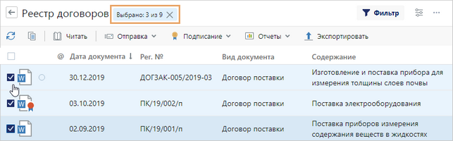Для отмены выбора записей повторно нажмите на флажок