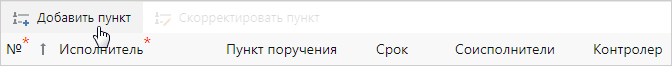 1.В карточке поручения в табличной части нажмите на кнопку Добавить пункт:
