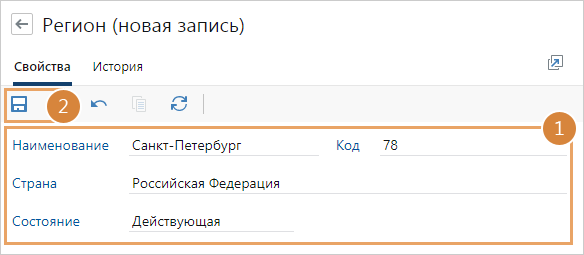 Справочник предназначен для хранения сведений об административно-территориальном делении стран. В дальнейшем регион указывается в карточке нашей организации и организации контрагента.
