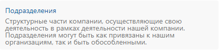 •создает карточки подразделений для одной или нескольких наших организаций;
