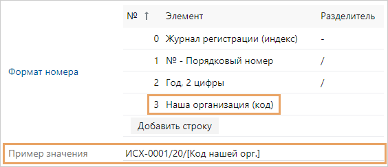 *Наименование. Сокращенное фирменное наименование нашей организации согласно правоустанавливающим документам. Юрид. наименование. Полное наименование нашей организации с указанием организационно-правовой формы согласно правоустанавливающим документам. Если наша организация зарегистрирована в другой стране – является нерезидентом, то установите флажок Нерезидент. Руководитель нашей организации. Выбирается из справочника Сотрудники. Руководитель получает права доступа к объектам системы всех руководителей головных подразделений нашей организации. Это необходимо, например, для наблюдения и мониторинга работы подчиненных руководителей, для доступа ко всей информации. Права, выданные автоматически, не отображаются на панели прав доступа. Совет. Рекомендуется всегда указывать руководителя нашей организации для корректной работы в системе. Например, это необходимо для вычисления исполнителей заданий при согласовании документа по регламенту. Главный бухгалтер нашей организации. Выбирается из справочника Сотрудники. Головная орг. Наименование головной организации, например, если наша организация входит в холдинг. В выпадающем списке доступны все наши организации. ИНН. Идентификационный номер налогоплательщика. Состоит из 10 цифр для организаций, из 12 цифр для индивидуальных предпринимателей (ИП). КПП. Код причины постановки на учет. Является дополнением к ИНН в связи с постановкой на учет в разных налоговых органах. Состоит из 9 цифр. ОГРН. Основной государственный регистрационный номер, который присваивается юридическим лицам. Состоит из 13 цифр. Для ИП указывается основной государственный номер индивидуального предпринимателя (ОГРНИП), который состоит из 15 цифр. ОКПО. Код общероссийского классификатора предприятий и организаций. Состоит из 10 цифр для организаций, из 8 цифр для ИП, из 14 цифр для территориально обособленных структурных подразделений (ТОСП). Для нашей организации-нерезидента в полях ИНН, КПП, ОГРН и ОКПО можно указать до 50 символов. ОКВЭД. Код общероссийского классификатора видов экономической деятельности. Если значения в полях ИНН, КПП, ОГРН, ОКПО и ОКВЭД указаны некорректно, появится соответствующее предупреждение. Важно. По значениям ИНН или ИНН и КПП осуществляется поиск дублей по записям справочника. Если дубли найдены, то появится соответствующее сообщение. Для просмотра дублей перейдите по ссылке Показать дубли в тексте сообщения. Код. Уникальный код нашей организации. Между символами кода не должно быть пробелов. Укажите код нашей организации, если его принято использовать в регистрационном номере документов. Формат номера настраивается в журнале регистрации: