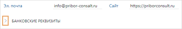 Например, для нашей организации указан код ПК. Тогда документ, который относится к данной организации, при регистрации может иметь номер ИСХ-0001/18/ПК. Зарегистрировать документ в журнале, где в формате номера есть код нашей организации, можно только, если заполнен код в карточке соответствующей нашей организации. Населенный пункт и Регион. При указании населенного пункта регион заполнится автоматически. Поле Регион должно быть заполнено, если от имени организации планируется выдавать электронные доверенности. Юридический адрес и Почтовый адрес. При вводе юридического адреса почтовый адрес заполнится автоматически. Совет. Юридический адрес рекомендуется заполнять в следующей последовательности: название улицы, номер дома, номер квартиры, название населенного пункта, название области, края, автономного округа (области), республики, почтовый индекс. Почтовый адрес рекомендуется заполнять в той же последовательности, как и юридический адрес организации с добавлением наименования страны перед индексом для иностранных организаций. Телефоны, Эл. почта и Сайт. Контактные данные нашей организации. При заполнении поля Телефоны необходимо указывать также код города. Номер счета и Банк. Номер расчетного счета, который используется для учета денежных операций нашей организации, и банк, в котором открыт счет. Номер счета может содержать от 8 до 34 символов. Номер российского счета состоит из 20 цифр. Для номера счета, открытого в иностранном банке, допускается использование заглавных латинских букв. ПРИМЕЧАНИЕ. По умолчанию поля Номер счета и Банк в карточке организации скрыты. Чтобы отобразить их, нажмите на кнопку