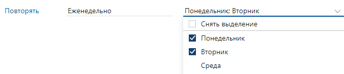 •«Еженедельно». Процесс запускается по выбранным дням недели: