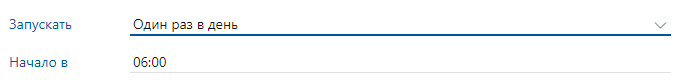 •«Один раз в день». Процесс запускается один раз в день в определенное время, которое задается в поле *Начало в. Например, с 6.00 один раз в день: