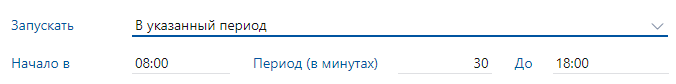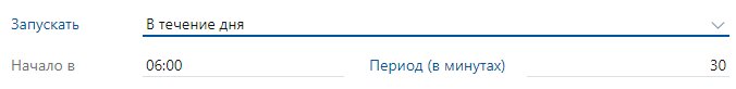 •«В течение дня». Процесс запускается несколько раз в течение дня через промежуток времени, заданный в поле *Период (в минутах). Например, каждые 30 минут в течение дня: