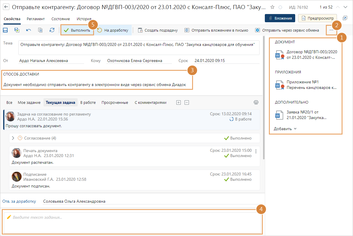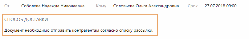 3.Отправьте документы контрагенту тем способом, который указал инициатор задачи.