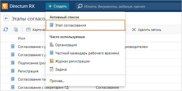 Чтобы создать этап согласования, воспользуйтесь одним из способов: