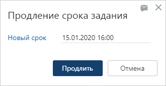 2.В открывшемся окне укажите новый срок задания на доработку:
