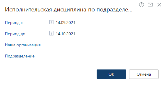 << Click to Display Table of Contents >> Контроль исполнительской дисциплины Отчет «Исполнительская дисциплина по подразделениям» |