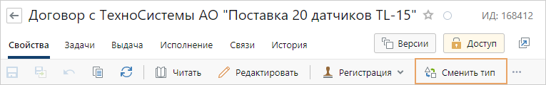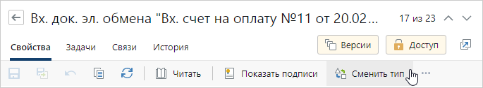 2.В карточке документа на панели действий нажмите на кнопку Сменить тип.