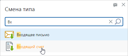 Если при обработке входящего документа электронного обмена был выбран некорректный тип, его можно сменить. Для этого: