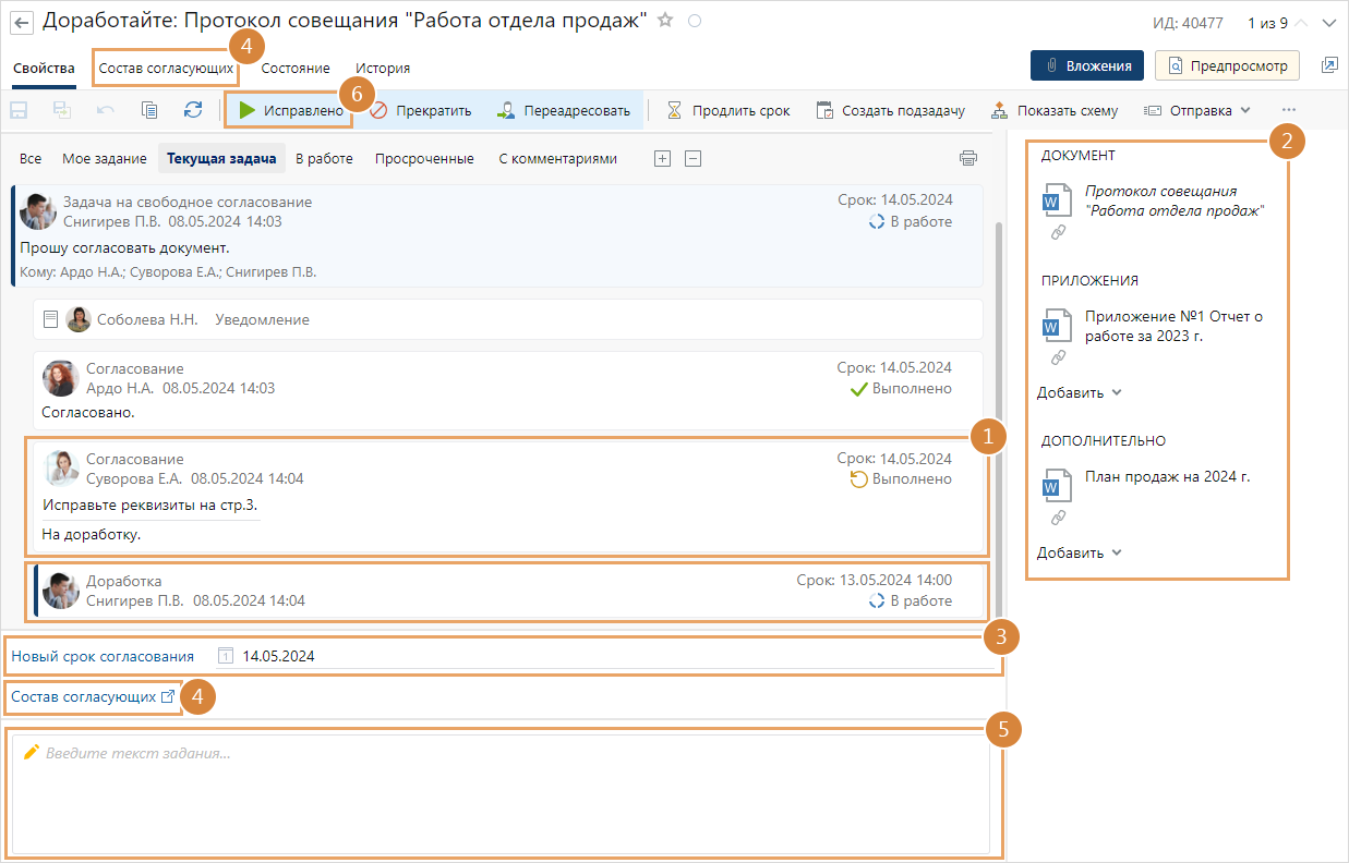2.Доработайте документы из области вложений по замечаниям согласующих.