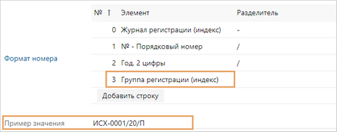 *Индекс. Уникальный индекс группы регистрации. Может использоваться в регистрационном номере документов. Формат номера настраивается в журнале регистрации: