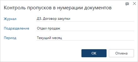 *Период, за который нужно найти пропущенные номера. Если для журнала регистрации, в котором ищутся пропущенные номера, в качестве периода нумерации установлен: