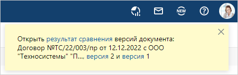 Подготовка результатов сравнения может занять некоторое время. В этом случае система уведомляет, что сравнение документов началось. Когда сравнение завершится и между документами обнаружены отличия, появляется сообщение со ссылкой на результат сравнения: