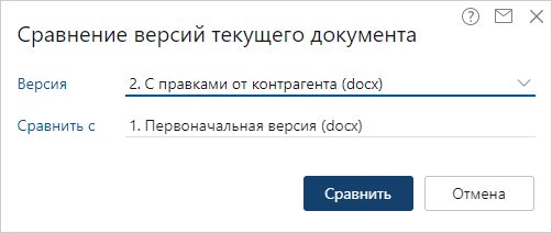 Версия документа, в которую были внесены изменения. По умолчанию указывается последняя версия документа. Сравнить с другим документом. Версия документа для сравнения. |