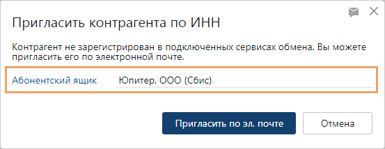 Контрагента можно пригласить к обмену электронными документами через те сервисы обмена, для которых настроены абонентские ящики нашей организации.