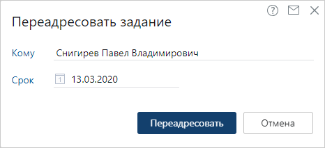 ПРИМЕЧАНИЕ. Переадресовывать нельзя, если задание конкурентное. Результат выполнения Переадресовать скрыт на панели действий.