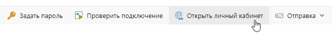 Из карточки абонентского ящика можно быстро перейти в личный кабинет сервиса обмена, который использует наша организация. Для этого на панели действий нажмите на кнопку Открыть личный кабинет: