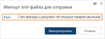Для успешного импорта убедитесь, что: •XML-файл имеет формат ДПТ, ДПРР, УПД или УКД; Примечание. Документы форматов ДПТ и ДПРР можно отправить контрагенту только через сервис обмена СБИС. •XML-файл не подписан электронной подписью (ЭП); •в системе есть действующие записи для нашей организации и контрагента с ИНН, КПП и ИД участника электронного обмена, которые указаны в XML-файле; •наша организация подключена к сервису обмена, который указан в XML-файле; •между нашей организацией и контрагентом установлен электронный обмен. Если какое-либо условие не выполнено, появится сообщение об этом. Например, если в системе не создана запись для нужного контрагента. В этом случае создайте запись и повторите импорт документа через некоторое время. |