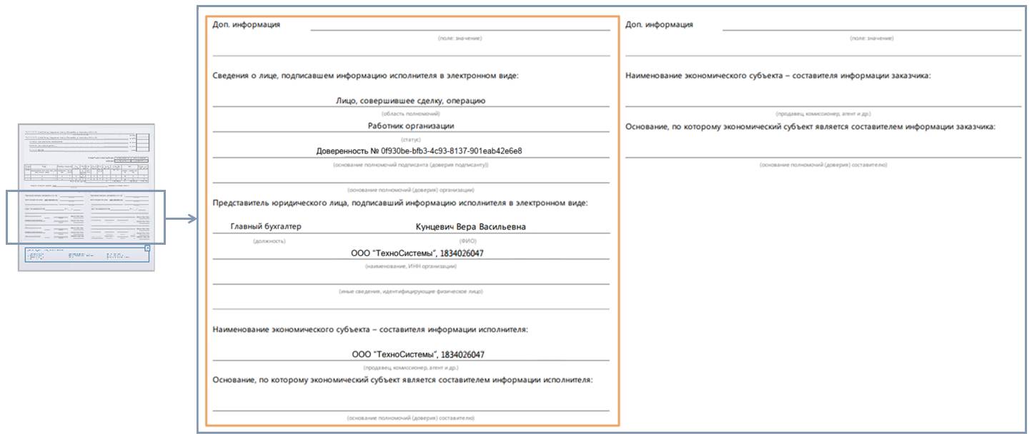 В результате в документе заполнится информация исполнителя.